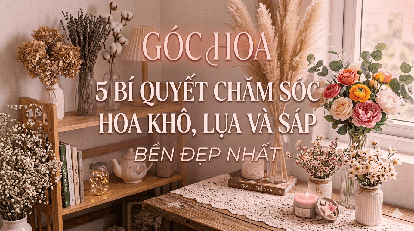Hoa khô, hoa lụa và hoa sáp ngày càng được ưa chuộng nhờ vẻ đẹp tinh tế, sang trọng và đặc biệt là độ bền vượt trội so với hoa tươi. Tuy nhiên, để những bó hoa này luôn giữ được màu sắc và form dáng như mới, bạn vẫn cần có cách chăm sóc và bảo quản đúng cách. Chỉ với một vài mẹo đơn giản, bạn hoàn toàn có thể giữ cho hoa luôn đẹp theo thời gian, dù trưng bày trong nhà hay làm quà tặng.